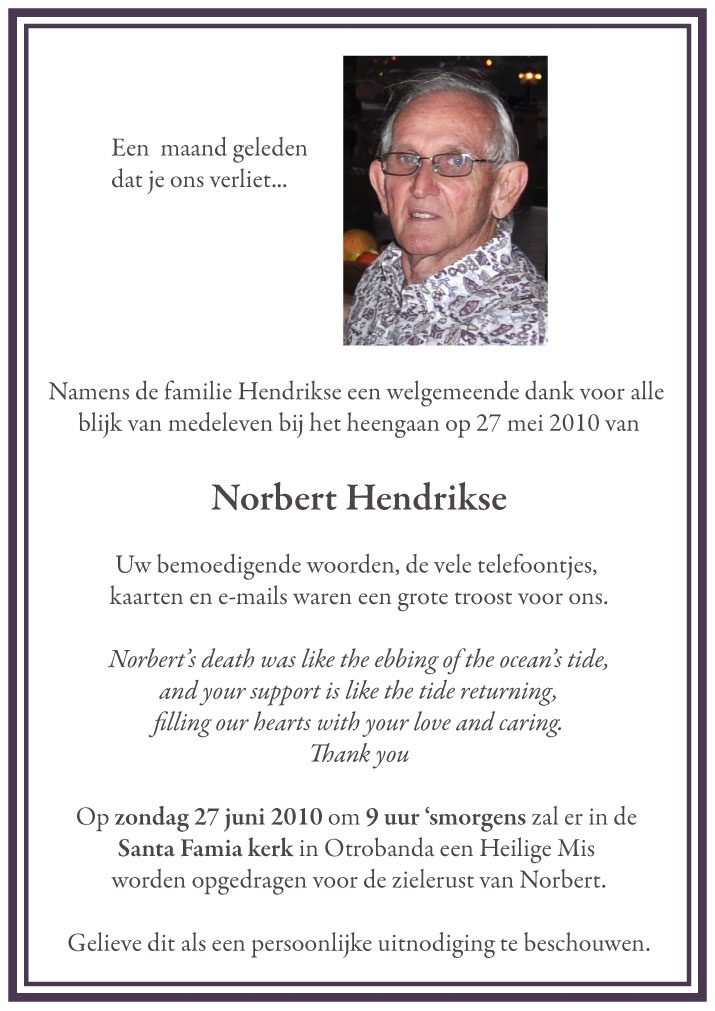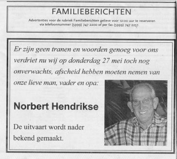 Verder zijn er een aantal herinneringen ontvangen o.a. van Janchi Beaujon alsmede van Norbert's zus Beppie en van Alex Alberto